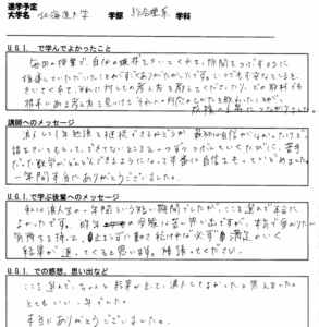 UGIからのお知らせ 大学受験 専科コースから見事 第一志望校合格 2026年3月6日 2026年3月6日 塾長学習塾UGI Facebook postはてブLINEPocketFeedly 第一志望校合格おめでとうございます 北海道大学 総合理系 ♪ 浪人を決めてからUGIに通塾して1年。 自習室で頑張っている姿がいまでも思い起こされます。 本当におめでとうございます!! 合格アンケートにも協力してくれました ⇒専科コース(既卒生)合格アンケート Facebook postはてブLINEPocketFeedly